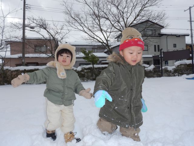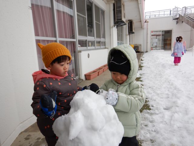 雪がたくさん積もった日に、みんなで雪あそびを楽しみました☃