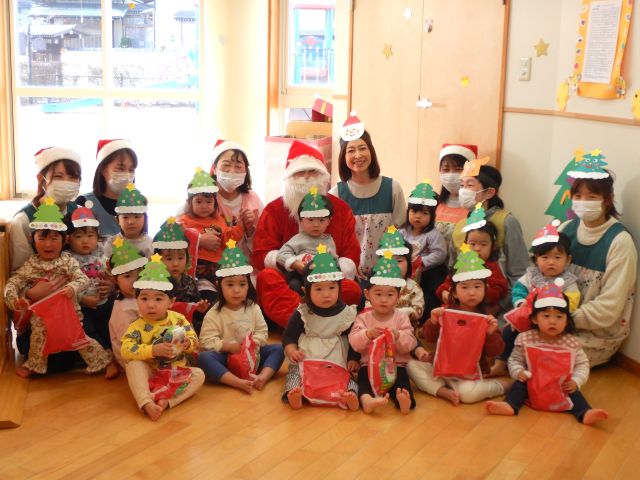 ちょっぴり緊張したけれど、泣いてしまうお友だちもいなく、サンタさんからプレゼントを手渡してもらいました🎁ハイタッチもできましたよ 「サンタさん、ありがとう!」