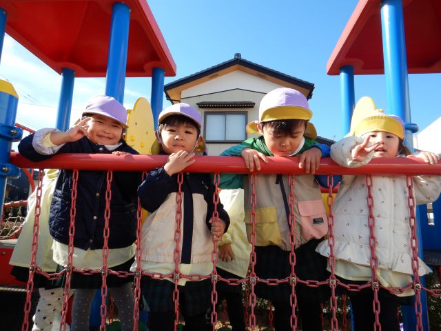 秋から冬に近づき段々と寒くなってきましたが、寒さに負けず元気いっぱいのばらぐみさん!天気の良い日には、戸外遊びを楽しんでいます。園庭で落ち葉や木の実を使って砂遊びをしたり、かけっこで体を動かしたりして遊んでいます。また、近くの公園に散歩に出かけると、大きな遊具で遊んだり、木の実を探したりとそれぞれ好きなあそびを楽しんでいました!