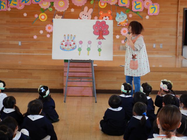 それから、誕生会の歌「ハッピーフレンズ」をみんなで歌って、最後は先生からのプレゼント!「さかみちコロコロ」というパネルシアターのお話です。