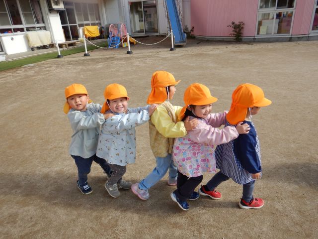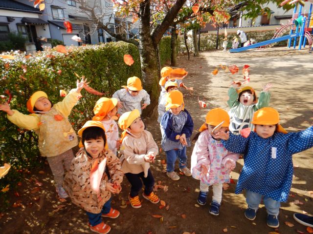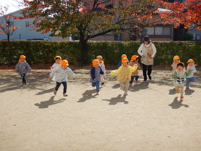 天気の良い日は、戸外あそびを楽しんでいます♪かけっこや追いかけっこ、落ち葉拾いや砂遊びなど、好きなあそびを思いきり楽しんでいます♫