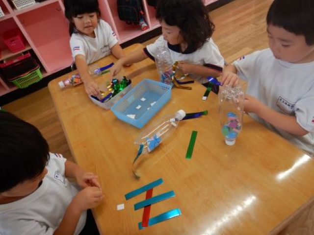 1学期に作って遊んでいたマラカスにキラキラを付けて応援グッズに変身させました!