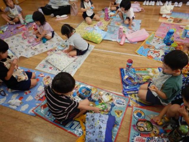 やっとお昼の時間になると嬉しそうに準備し、「おいしいね♪」とお話しながら、友だちや保育者と楽しいお弁当の時をすごしました!